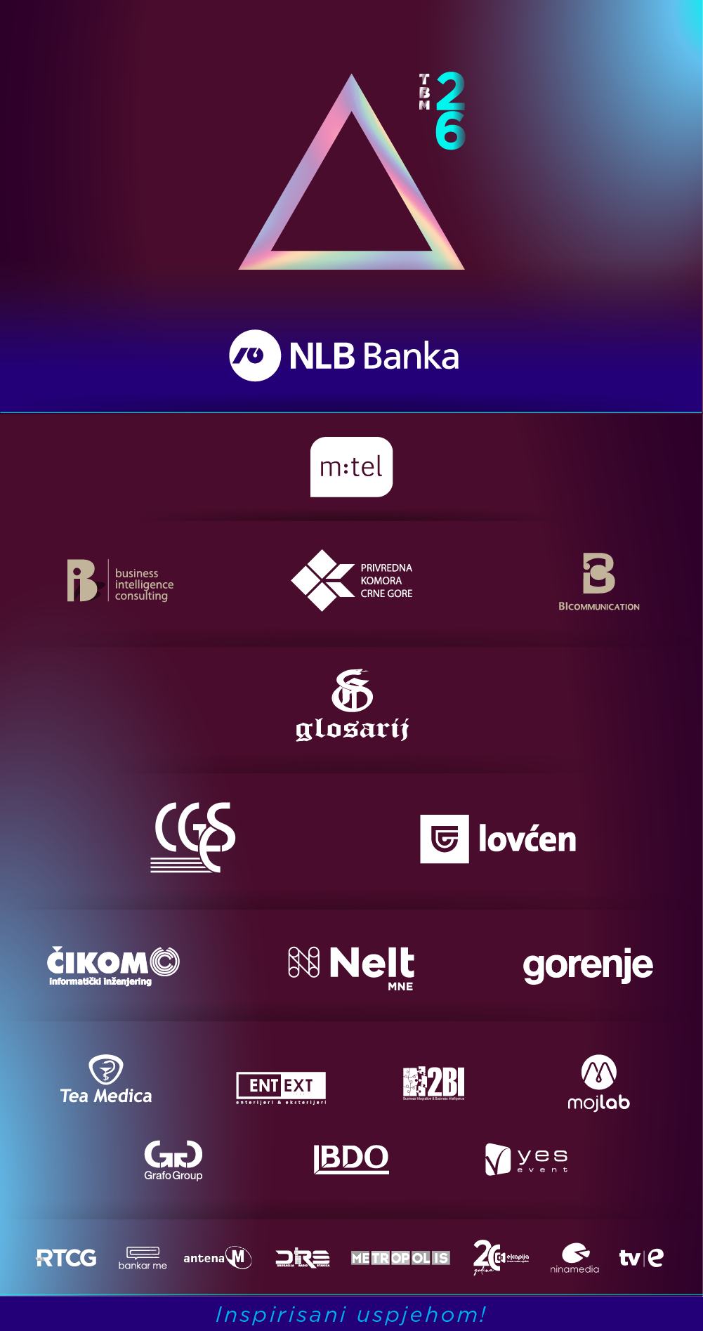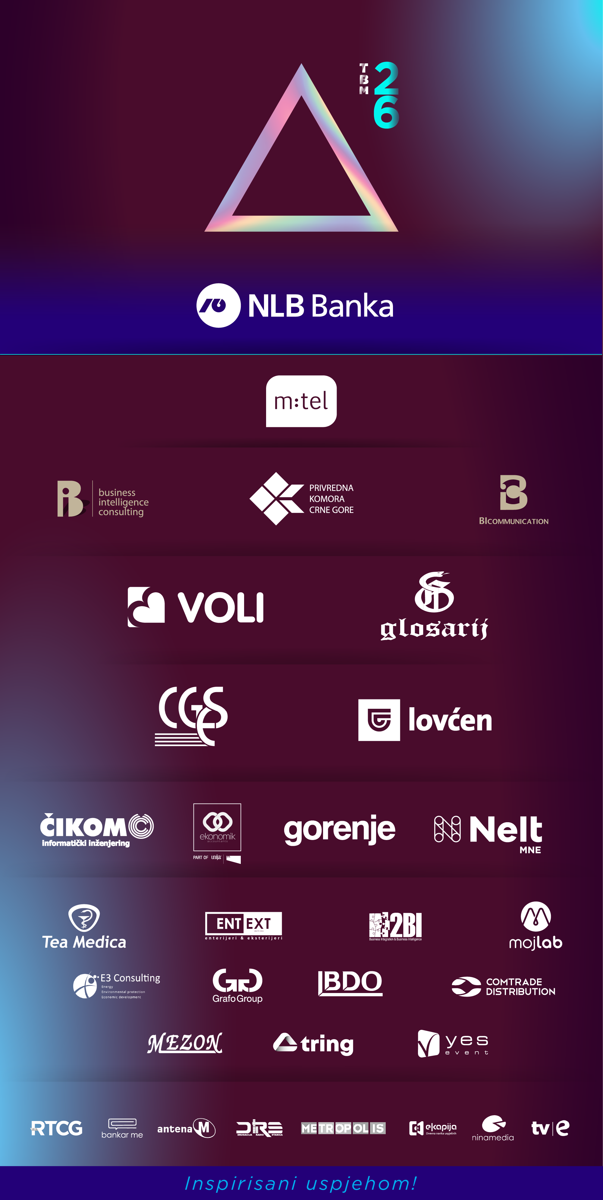Inicijativu Top Busines Montenegro realizuje agencija za kreativne komunikacije BI Communication, uz podršku vodećeg crnogorskog provajdera poslovnih informacija BI Consultinga, koji je i Analitički partner projekta.