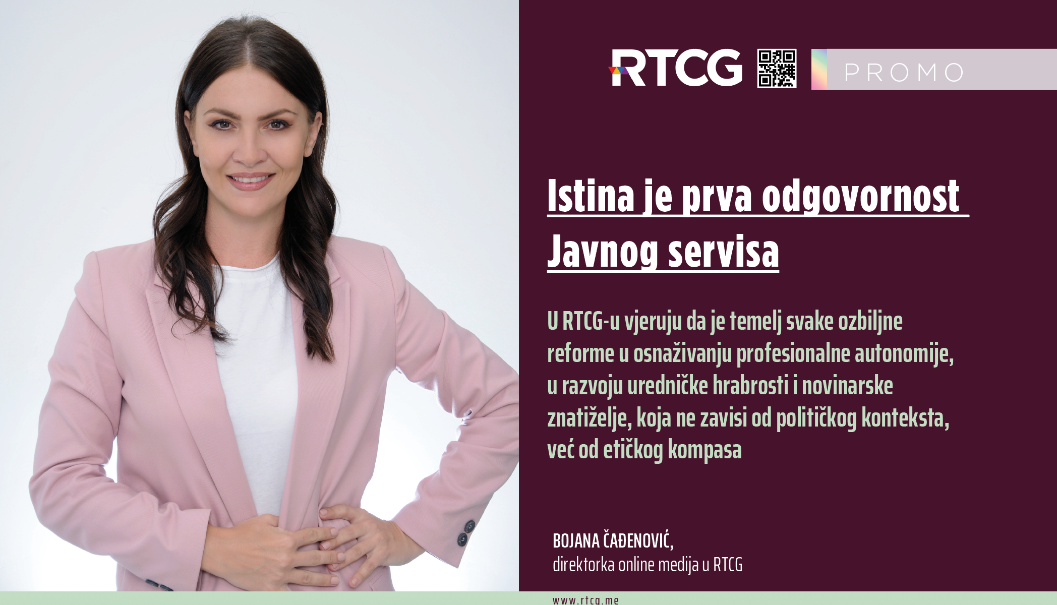 Prva odgovornost RTCG-a jeste istina, druga su kvalitet i pouzdanost, a treća je pristojnost. U RTCG-u se trude da svakog dana odgovore na jednostavno pitanje – ako ovo objavimo, da li će društvo biti makar malo bolje informisano, makar malo više ujedinjeno, makar malo više osnaženo? Ako je odgovor ‘da’, onda to jeste posao Javnog servisa. Program RTCG-a jeste „ugovor” sa građanima, a Javni servis se trudi da ga ne krši ni riječju ni ćutanjem.
